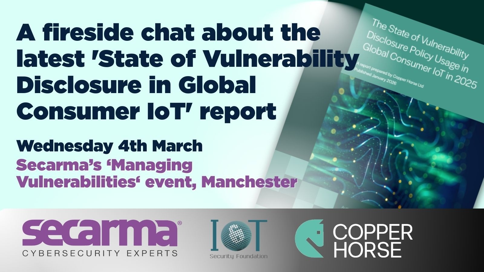 Last month, Copper Horse – in partnership with the IoT Security Foundation – published the 8th edition of ‘The State of Vulnerability Disclosure Policy Usage in Global Consumer IoT’.