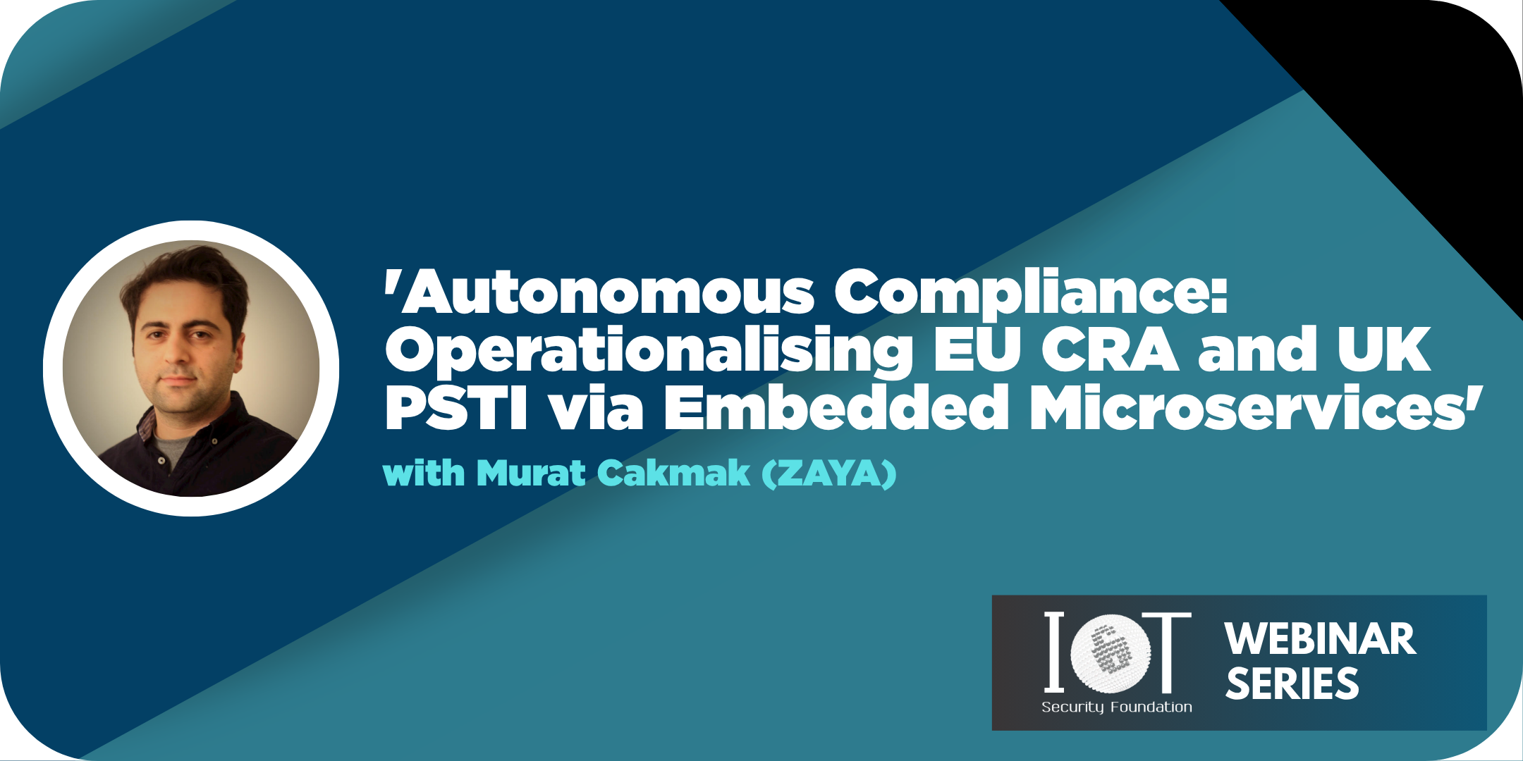 'Autonomous compliance: EU CRA and UK PSTI via embedded microservices' with Murat Cakmak (ZAYA), taken from the March 2026 IoTSF webinar series. For the full recording including Q&A, go to the Plenary message board on our members' platform.
