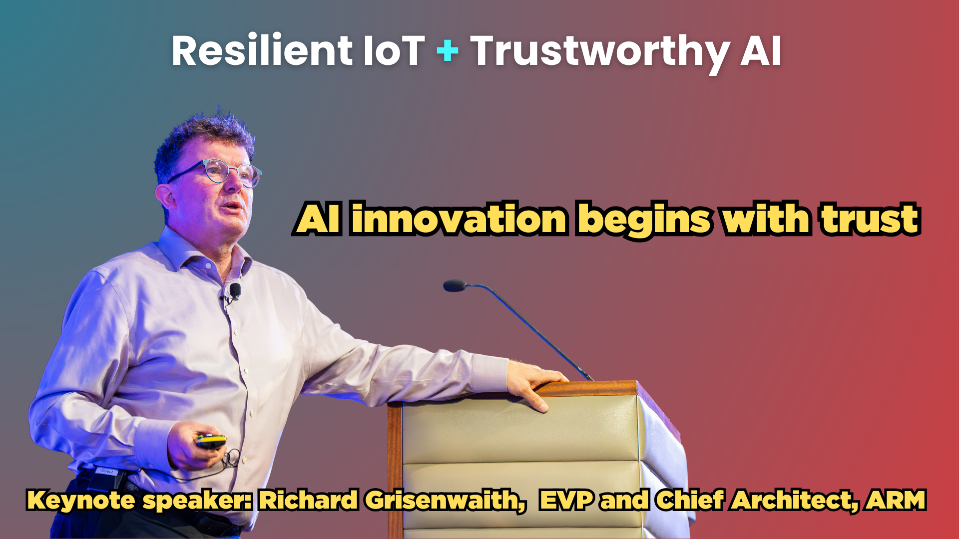 Watch keynote speaker Richard Grisenthwaite - Executive Vice President, Chief Architect, Arm - present 'AI innovation begins with trust' at the 2025 IoTSF annual conference.